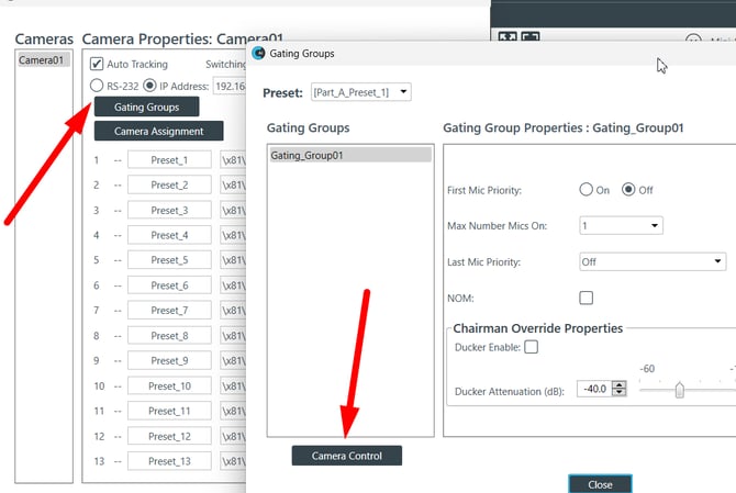 Clicar em GATING GROUP e depois clicar em CAMERA CONTROL: